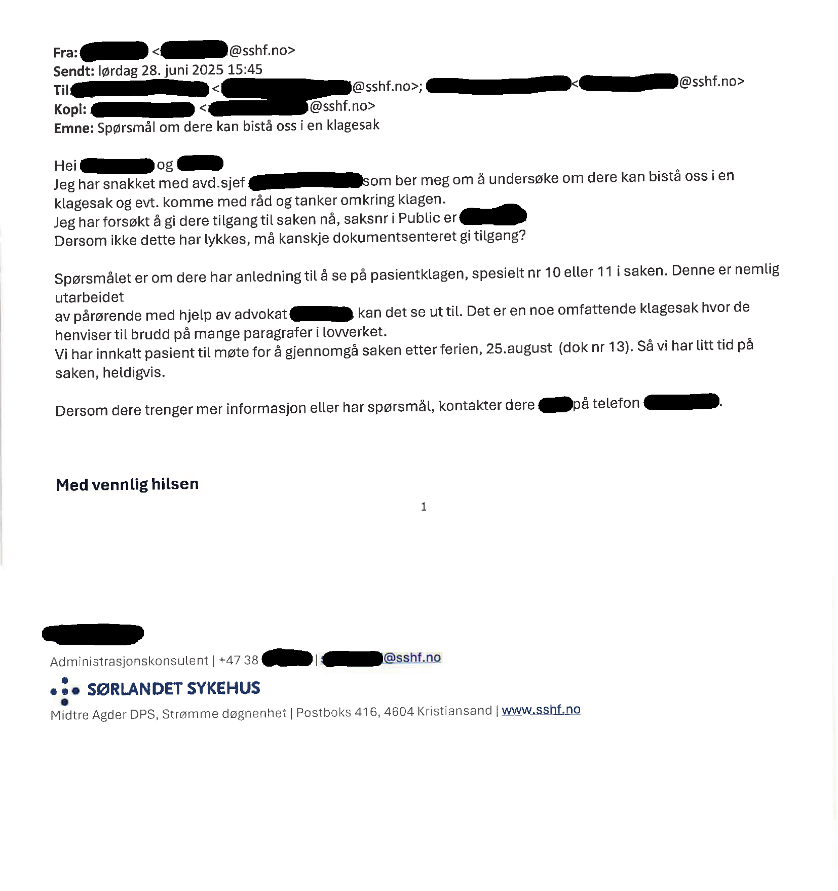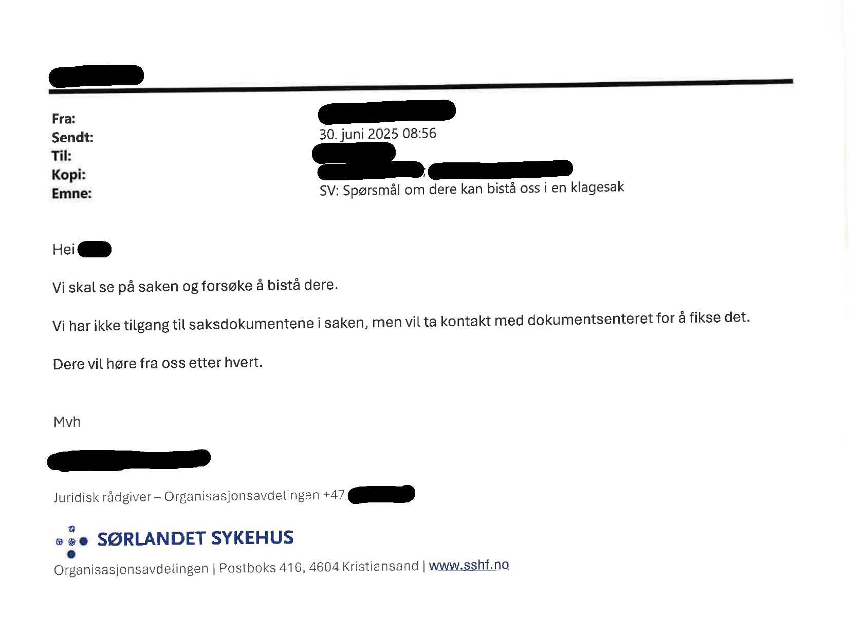 «Vi har innkalt pasient til møte for å gjennomgå saken etter ferien, 25. august. Så vi har litt tid på saken, heldigvis.»